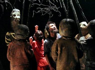 在回头审视话剧史中的经典时,王延松发现自己创作的兴奋点还是聚焦于曹禺戏剧。2006年2月,他为天津人民艺术剧院改编并导演了曹禺的《原野》,在导演阐述中,他提出要对原剧进行必要的凝缩和提炼,以适应当代观众的欣赏习惯和剧场的演出长度。但是他又申明,决不对曹禺戏剧进行肢解,也不用自己的语言更改原剧的台词。在反复审读《原野》的基础上,他要生发自己的艺术灵感,扩展戏剧的诗意空间。他认为充满复仇冲动的仇虎,从一出场时就陷入了灵魂的黑森林,因此,黑森林这一意象不能等到戏剧最后才出现,而是要在戏剧一开始就形成强烈的视觉印象。为此,他创造了与剧中人相对应的7个土陶类人形,他们诡异、神秘地逡巡于仇虎周围,躲不开,挥不去,给他的心灵造成恐惧性威逼,并形成他逃不开的心狱。