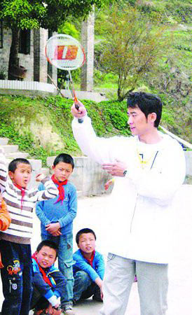 4月6日,任泉来到湖南古丈县的岩头寨乡九年制学校,既当语文老师又当体育老师,晚上还住在贫困学生的家里。昨天,在上完了最后一课《桂林山水》之后,任泉主动要求资助该校的贫困学生。在校方的推荐下,找到了10名贫困学生,任泉一对一地交代他们要努力学习。“虽然我平时拍戏工作很忙,但是我也会抽出时间给他们打电话,寄礼物,鼓励他们好好学习!”