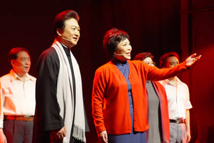 昨晚,大型诗歌朗诵会《红色箴言》在国家大剧院举行。这台“磨剑”四年、演出逾百场的诗歌朗诵会,对首都观众既是一席艺术的盛宴、也是一次精神的洗礼。演出之前,作为主创人员,两位杰出的配音艺术家―――丁建华和乔榛在北京接受了本报的独家专访,讲述了《红色箴言》的创作故事和他们的心路历程。