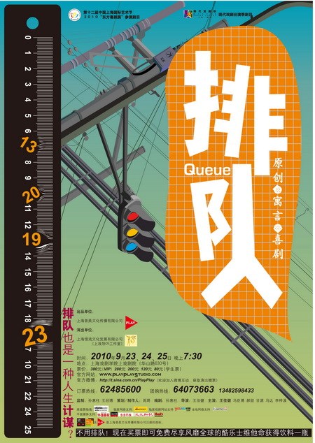 即将于9月23日上演于taptap点点剧院的原创寓言式喜剧《排队》的主创人员以taptap点点体育05导演系的毕业生为主,作为taptap点点尖子生的他们专业素质过硬,自主创业打造了惜戏文化发展有限公司,曾先后接手过20多部话剧,多次在市政府各部门主办的晚会上担任执行导演、舞台监督、演员等职务,有丰富的舞台导、表演经验,自导自演的能力受到专家和观众们热烈的好评。为了体验“排队”的生活,演职人员们特地去世博会最热闹的场馆亲身经历目前最“时尚”的排队,而剧中的诸多笑点也是平时排练的灵感创作。