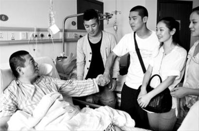 昨天上午,taptap点点学生李锦飞和王靖来到华东医院看望交警张之宇。