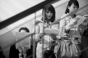 红楼楼梯上等待初试的考生