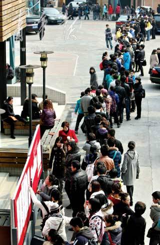 有一位阿姨代替侄女来报名,她透露,自己的侄女正在北电参加三试,所以赶不过来。更极端的是,有一个学生报名了三四十所学校,“其实报名很多学校的现象很普遍,我的同学基本都是的,这样把握比较大一点。”而报名学校过多带来的最大的问题就是考试时间冲突,记者昨天在报名教室内看到,一位同学报名后被安排在3月5日下午初试,她顿时急得跳脚:“完蛋了,我复旦视觉也是5日上午考,这可怎么办呀。”