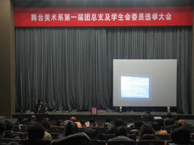 12月21日中午12:15我院舞台美术系第一届团总支与学生会委员选举大会在端钧剧场顺利举行,经过严格的候选人资格审定和公开、公正、严密、合法的民主选举程序,大会选举产生了舞美系第一届团总支及学生委员会。出席选举大会的有学院组织部部长兼学生处处长邱中岳老师,舞台美术系党支部书记、系主任刘永华教授、舞美系党支部副书记胡佐老师、舞美系副系主任伊天夫老师,舞美系朱光武老师。会上,邱中岳老师、胡佐老师分别代表学院和舞美系作了发言,鼓励与会师生为丰富校园文化活动、推动学校和舞台美术系的发展做出努力。