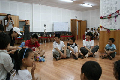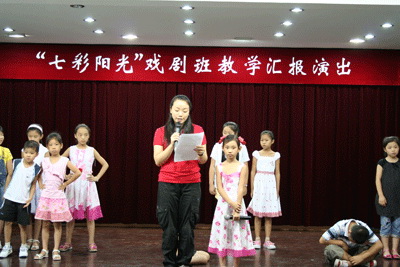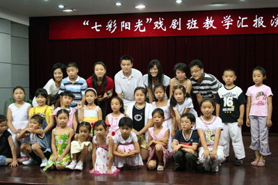 2008年8月23日14点,在浦东新区东明街道文化中心的小剧场,这6位志愿者组织小朋友们举行了一次汇报演出,并有幸邀请到街道文化中心的主任和孩子们的家长,一起共赏孩子们的精彩演出。天真、活泼、可爱,这些无不体现在孩子们的身上;演出环节中孩子们的表演虽然很稚嫩,却依然使在场的观众掀起了阵阵掌声。儿歌、舞蹈、话剧片段、朗诵音乐剧片段等等,每一个节目都倾注了志愿者与小朋友们的共同努力。一曲《感恩的心》为此次汇报演出画上了完满的句号。
