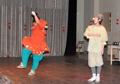 为了使舞会更具有新年的浓郁氛围,舞会开始时在整个剧场周围挂满了一个一个的小灯笼,灯笼下面挂着各色各样的灯谜,先到的同学可以在那里打打灯谜,作作游戏,猜中的同学还可以领到一份意外的奖品。而之后,打扮成小丑的李子南扛着同样的打扮成小丑的甘源来到了舞台上,他们在台上唱歌跳舞,幽默的表演引来了大家一阵阵的欢笑。然后,主持人李炯定和夏青正式宣布元旦舞会开始,之后立刻进入了游戏环节,解扣、蒙眼吃香蕉、猜数字、电影配音等等花样百出的游戏,再加上游戏主持人夏帅在一旁的引导和风趣评论,使得无论参与者还是观众,都享受到了其中的乐趣。而游戏中间还穿插着抽奖,谁能最快打进主持人的电话便有一次抽奖的机会,但有的在抽奖的同时还要当场表演各种即兴的节目,更增添了抽奖活动的娱乐性。而最后的“DJ炫舞”使得舞会达到了一个高潮,所有人手拉着手在舞台上围成了一个圆圈,然后一个接一个的在圈子里秀出自己最炫的舞姿,跳出自己最酷的动作,在这个有点寒冷的冬夜,留下了一个个最火热的回忆。