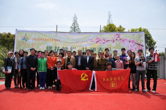 4月15日,在副院长张伟令的带队下,党委组织部的指导下,学生党总支组织学生党员50余人赴浦东新区老港镇成日村进行“桃花灿烂,共塑春泥”慰问演出,这也是连续第五年到成日村送戏下乡。副院长张伟令,组织部部长邱中岳,学生党总支书记、学工部(主持工作)副部长徐咏,学生处、团委联合支部书记、团委书记陈云等老师一同前往。本次慰问演出是深化“创先争优”、推行基层组织建设年的重要活动,也是成日村党支部实践组团式服务的积极探索。