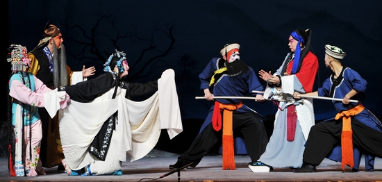 京剧《野猪林》的故事取材于我国古典名著《水浒传》,其内容是说北宋年代东京八十万禁军教头林冲,被太尉高俅陷害,被发配至沧州。高俅又责令解差在野猪林内杀害林冲,不想被林冲的结义兄弟鲁智深搭救。后来在山神庙,林冲手刃了仇人陆谦,与鲁智深同上梁山聚义。