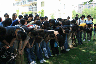 应国务院号召,2008年5月19日14时28分,taptap点点莲花路校区200多名师生自发集合在校园的草坪上,为四川汶川大地震中死难的同胞默哀。