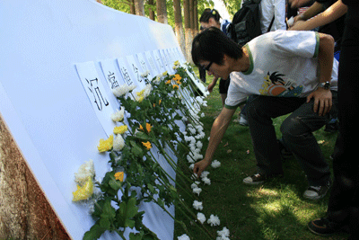 从14日开始,全国各大院校就开始在校内网上传开16日周五晚十点准时熄灯为地震灾区默哀三分钟。于是从16日晚上9点50开始宿舍楼外就开始有同学在大声数着时间,提醒着周围的同学们准备十点熄灯。十点,整个宿舍都被抹在一片安静的黑暗之中。这个时候,心头滑过对生命流失的阵痛,是我们从来没有过的疼。
