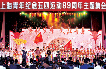 5月4日,“激情岁月,火红青春”――上海青年纪念五四运动89周年主题集会在黄浦区隆重举行。团上海市委书记潘敏在主题集会上致词。我院附属戏曲学校的节目《京剧风采》参加演出,表演系04级学生王传君参加奥运歌曲《We are ready》的演唱,校友郝平、赵海涛、王杨美子等参加了配乐诗朗诵《三十年光辉历程,三十载火红青春》。