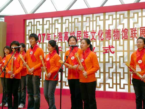 但联展任务还分为开幕式表演与展厅演讲两部分。我担任开幕式上的表演,主要介绍自己的高校及博物馆的位置所在。原以为简单的几句话很容易过关,可真正参与其中才知原来真有“看人挑担不吃力”这句话。11所高校志愿者代表,都是第一次见面的新朋友,自然配合得不够默契,可渐渐地,在导演的悉心排演下,大家的语气、神态乃至动作都协调起来。我们不厌其烦地一遍遍地走台、练习,力争以最佳状态呈现在到访的市领导和嘉宾们面前。值得骄傲的是,在正式的开幕式上我们都发挥出理想的水平。而负责我们展厅演讲的徐婷同学也相当出色,她大方得体的谈吐使大家听得兴致盎然。