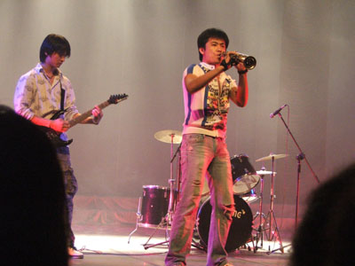 晚会一开场,由05级导演系、表演系王佳健、谭智泉、赵梓博、徐成康、胡是之、吴森组成的乐队便先声夺人,吸引了全场所有人的眼球。他们表演了精彩的摇滚音乐串烧,有激情奔放的流行歌曲,也有高亢神圣的《国际歌》。在不断变换的五彩灯光下,乐队成员的演奏调动起了全场所有人的情绪。