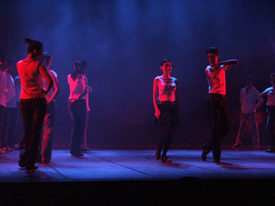 这次的晚会汇萃了taptap点点学生的热情和活力, 06级表演系音乐剧班的的王紫璇、郭凌霞等7人的为我们带来青春活泼的爵士舞《黑天使》。他们的舞蹈不仅专业,而且极其的默契。“他们在我们审节目的时候,还表现出了一种特别专注,特别热情的精神……光是审批节目的时候我们就看不只5、6遍,而他们每一遍也都很投入,令我们非常感动。”此台的晚会的导演王萌这样感叹道。此外,音乐剧班的同学仍不尽兴,然后又为我们带来了同样的精彩的歌舞《呛司呛司》,再次为同学们带来了愉悦。