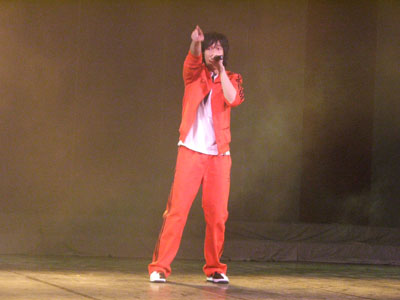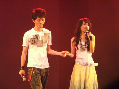 06级表演系音乐剧班的郭凌霞和江一的对唱《屋顶》音腔优美唱功不俗,而这边唱罢那边响,06师弟师妹们的精彩表现很快让高年级的师哥师姐坐不住了。这不,舞蹈学院郑甜甜和买苏南激情四射的国标舞《恰恰》还余热未消,04表演系王传君已经迫不及待要上台一展歌喉。只见他边舞边唱,连演两首,顺利将本已热力四射的晚会现场更推向极致;而06音乐剧班7名女将上阵的爵士舞《黑天使》,大有和同班5名男生的《呛司呛司》一争高下的气势。最后,已经大四的师哥,03级播音主持专业的赵路一展歌喉的《霸王别姬》真正让大家见识到,到底是前辈的实力不同凡响。