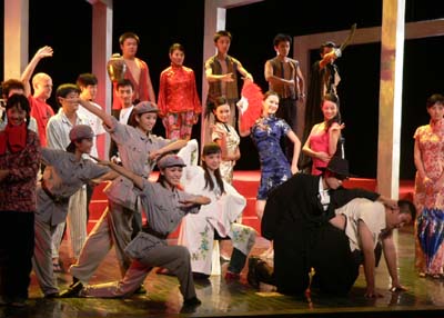 今年适逢中国电影百年华诞,表演系和导演系05级新生们克服了专业上的差别和课时安排的不便,排除种种困难,发扬合作精神推出了中国电影大串烧的《流金岁月》节目,代表05级所有入校新生为国庆和学院献上了一份祝福。虽然作为刚站在起跑线上的新生,他们的专业水平还有待老师们的指导和实践的磨练,但他们在关键时刻表现出来的合作精神已令人十分赞许。