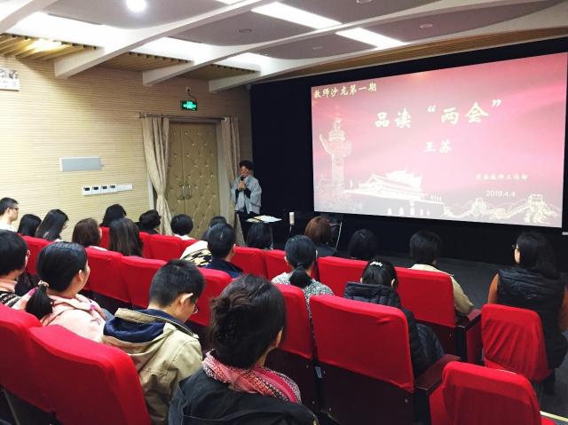 4月4日下午,由校教师工作部主办的教师沙龙活动在图书馆多功能厅举行,首期沙龙由全国政协委员,工会专职副主席王苏老师主讲。校党委副书记胡敏,党委副书记、纪委书记周银娥及四十多名教职工参加。活动由党委教师工作部副部长徐莹主持。