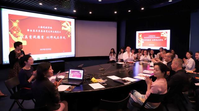 因此,学生的思想政治教育并不仅仅是思政课教师的任务而是全体教师的职责所在,学校一直在倡导戏剧+思政教学模式,舞美系全体教师积极响应学校的号召。本次主题党日,舞美系所属5个教研室分别安排一名党员教师展示10分钟的戏剧+思政微课。