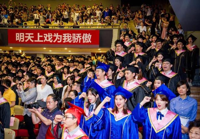 在宣誓环节,全体毕业生起立,举起右拳,面向校旗庄严宣誓:“追求卓越,至善至美,脚踏实地,服务人民,弘扬中国精神、凝聚中国力量,为新时代社会主义文化繁荣兴盛而努力奋斗!”每一句誓词都铮铮有力,激情昂扬,彰显了毕业生励志感恩的毕业情怀。