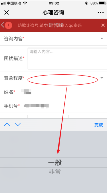 7、“紧急程度”一栏,根据自身实际情况填写“一般”或“非常”。