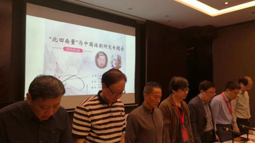 26号上午,研讨会特地举办“北田南董”与中国话剧研究专题会,专题会由陈军、汤逸佩两位教授主持。会前举行了简短的默哀仪式,陈军教授指出,不久前,著名戏剧学家、学会开创者田本相先生和董健先生相继去世,这是中国教育界、文化艺术界和学术研究界的重大损失!田老师和董老师都对中国话剧研究做出过奠基性和开创性的贡献,为中国话剧研究界培养了一批中坚力量,业界一直有“北田南董”之说,今天召开这个专题会就是向前辈学者致敬,追思他们高尚的思想情怀和人格魅力,缅怀他们的学术上的成就和贡献。40余位专家学者共同纪念田本相、董健两位前辈学人,从各自视角追忆与他们交往的点滴经历及获得的感受和启发,例如田本相先生的敬业、勤奋,对学术的献身精神和杰出的组织能力,开创了整整一个学术时代;董健先生广阔的学术眼界、博大的学术胸怀及其强烈的反思批判精神等等。大家一致认为两位先生都有深厚的五四情结,是中国精英知识分子的代表和中国话剧进步传统的守护者,他们不仅对中国话剧研究做出过卓著贡献,为学科和学会的发展鞠躬尽瘁、死而后已,而且他们身上始终如一的探索真理的进取精神、优良的学风和独立思考的个性值得一代代学人传承下去,并发扬光大。