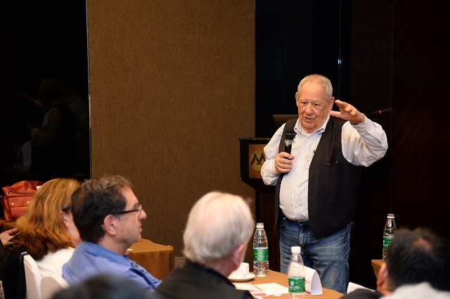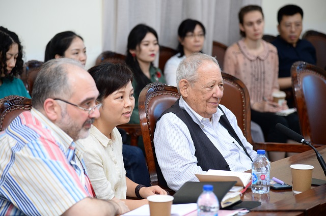 上午的会议主要为谢克纳教授的主旨演讲和讨论,谢克纳教授用风趣的语言介绍了人类表演学的发展过程;阐述了该学科的核心概念——从存在、行动、展示行动到阐释行动的展示;给大家介绍了自己几十年来的学术研究、导演创作和工作坊。在随后的提问环节,参会的各位学者积极与教授互动,针对自己的疑惑提出问题,教授的机智幽默的回答引起了大家更大的兴趣,欲罢不能。
