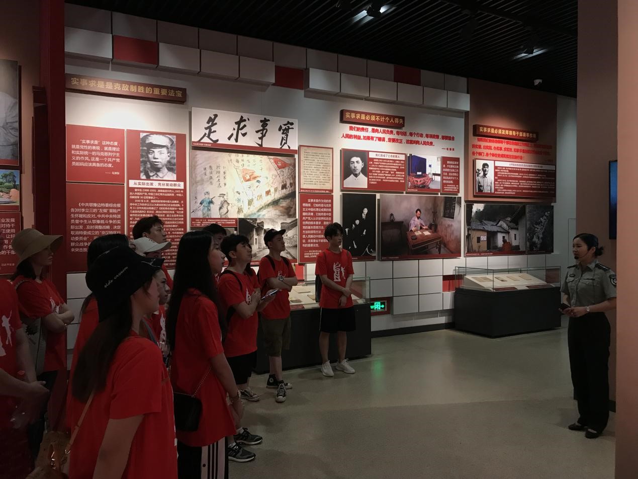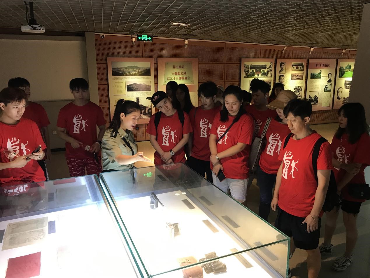 同时,为迎接即将到来的新中国建国70周年,深入贯彻落实习近平总书记关于弘扬爱国主义教育的重要讲话精神,重温革命之路,感受红色之光。另一部分师生组成了参访交流实践队,一行人上午以“重走革命老区,领悟红色精神,传承红色基因”为初心来到了位于信阳光山县砖桥镇的刘邓大军王大湾会议旧址纪念馆、邓颖超祖居等进行参观与学习。感受到了革命先辈刘伯承、邓小平千里跃进大别山的不易,全方位地了解了邓颖超同志光辉的一生和邓家的历史,同时也欣赏到祖居古朴典雅的清代徽派建筑艺术风格。