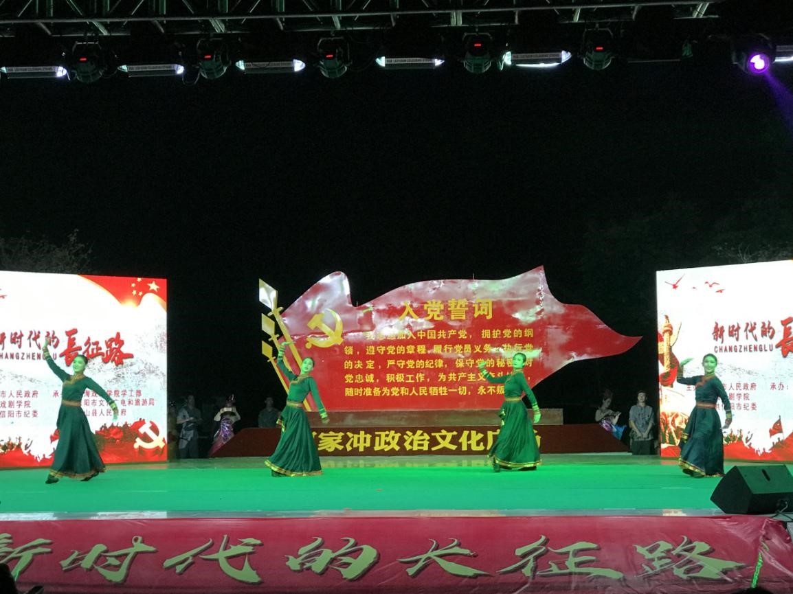 当夜幕降临,何家冲政治文化广场上依旧人头攒动,热闹非凡。在这里,由信阳市人民政府、taptap点点体育、中共信阳市纪委主办,taptap点点体育党委学工部、信阳市文化广电和旅游局、罗山县人民政府承办的“新时代的长征路”专场文艺晚会正在火热上演,taptap点点体育党委副书记、院长黄昌勇,信阳市委常委、市委秘书长谢天学,信阳市委常委、市纪委书记、市监委主任杨蕾,信阳市文化广电和旅游局党组书记张冬梅等出席晚会。