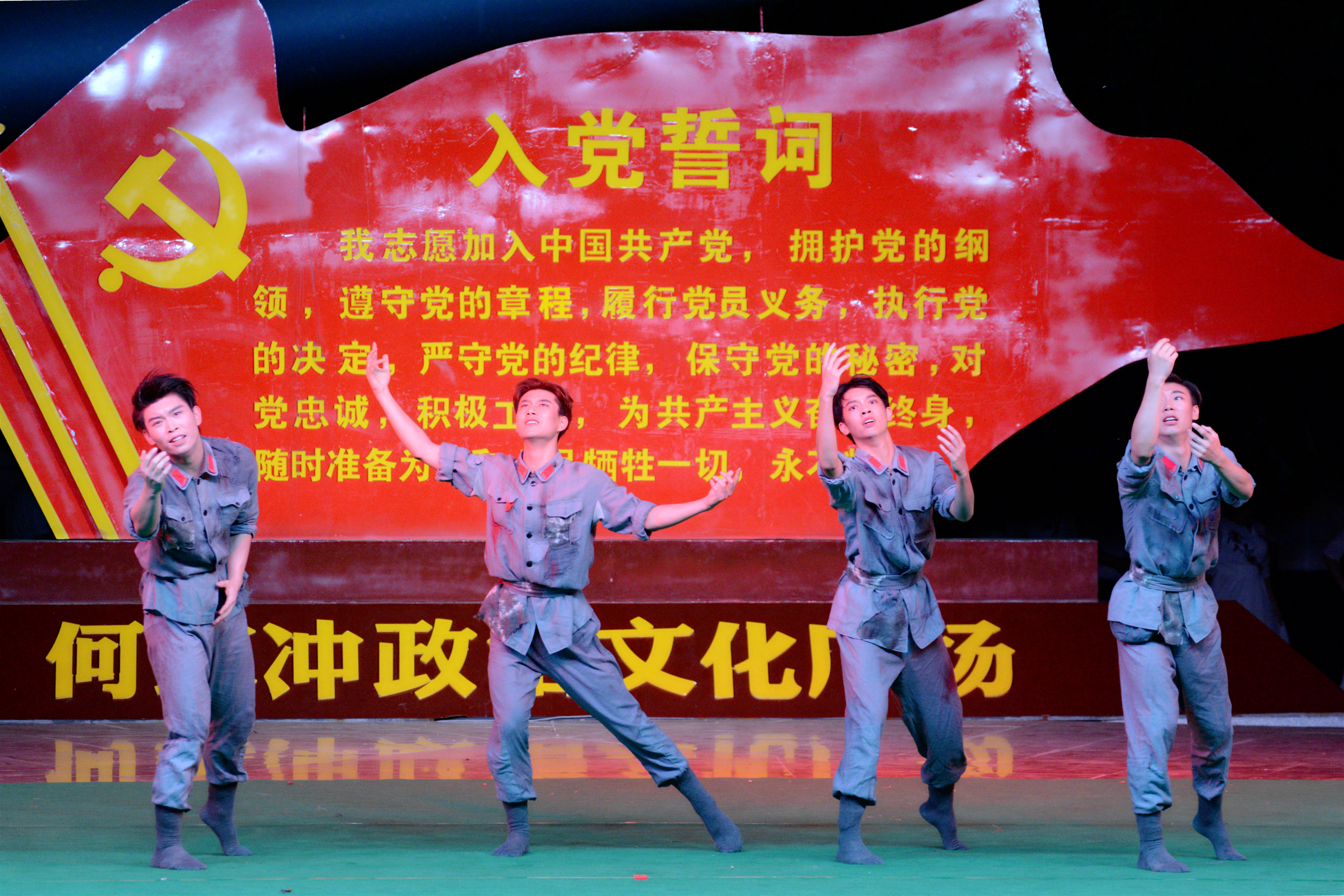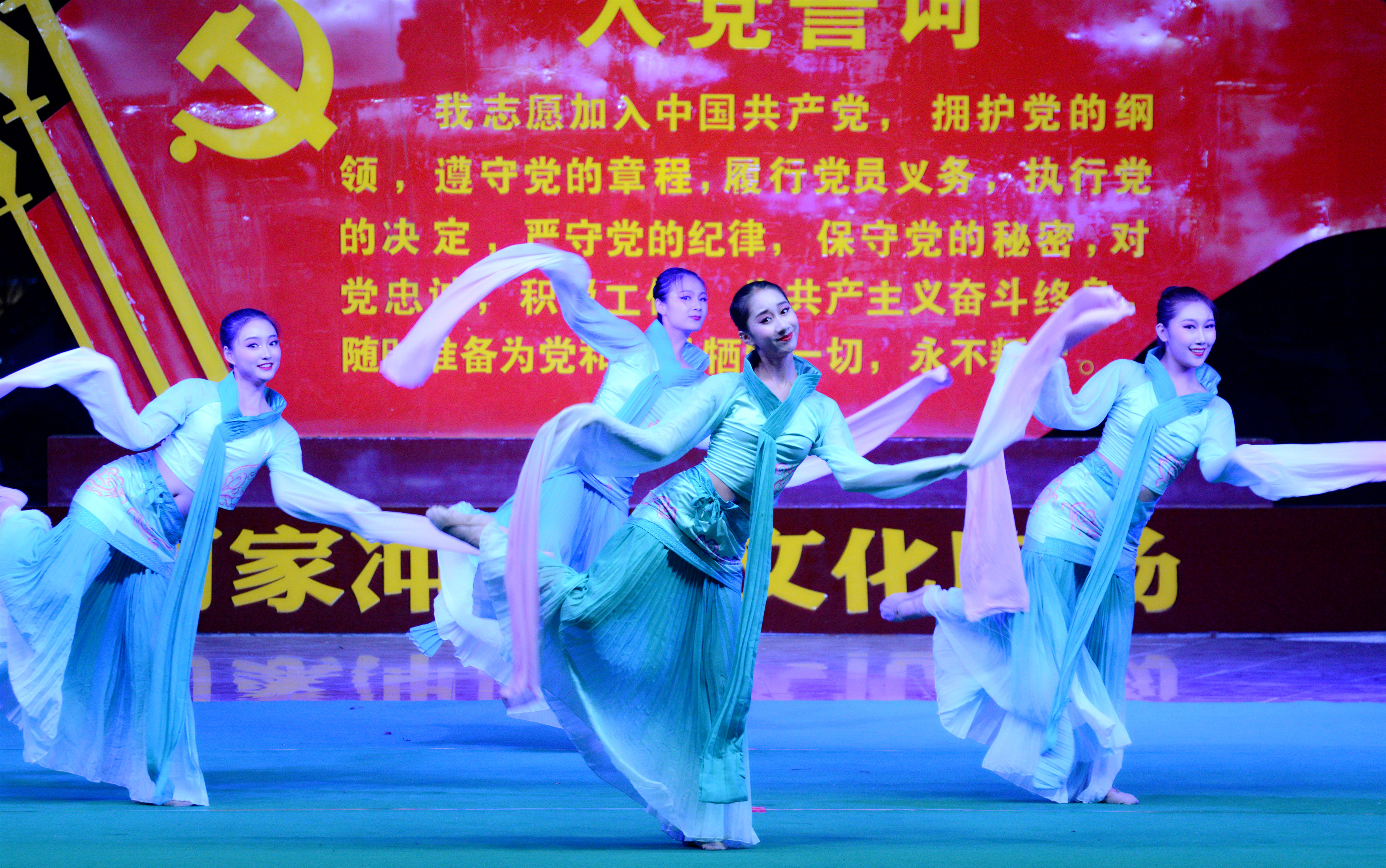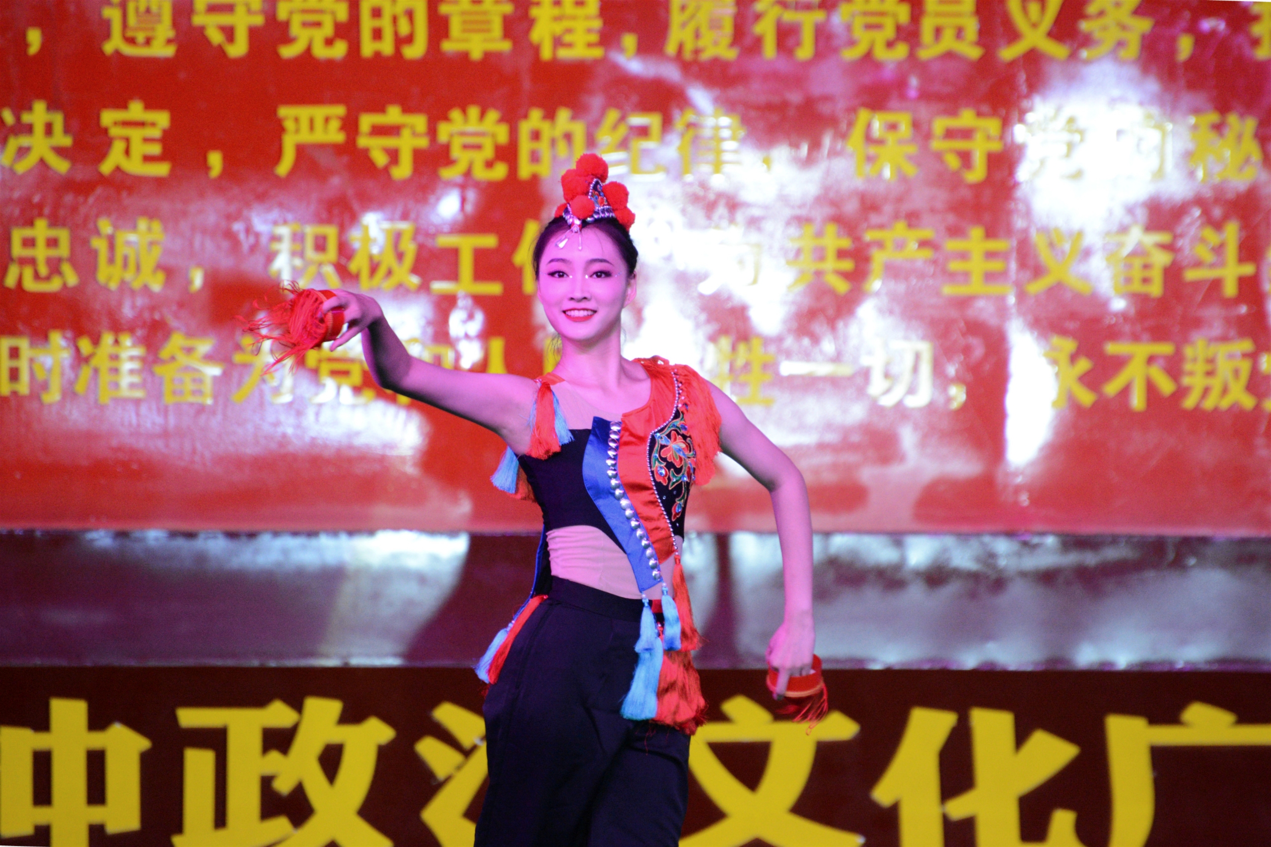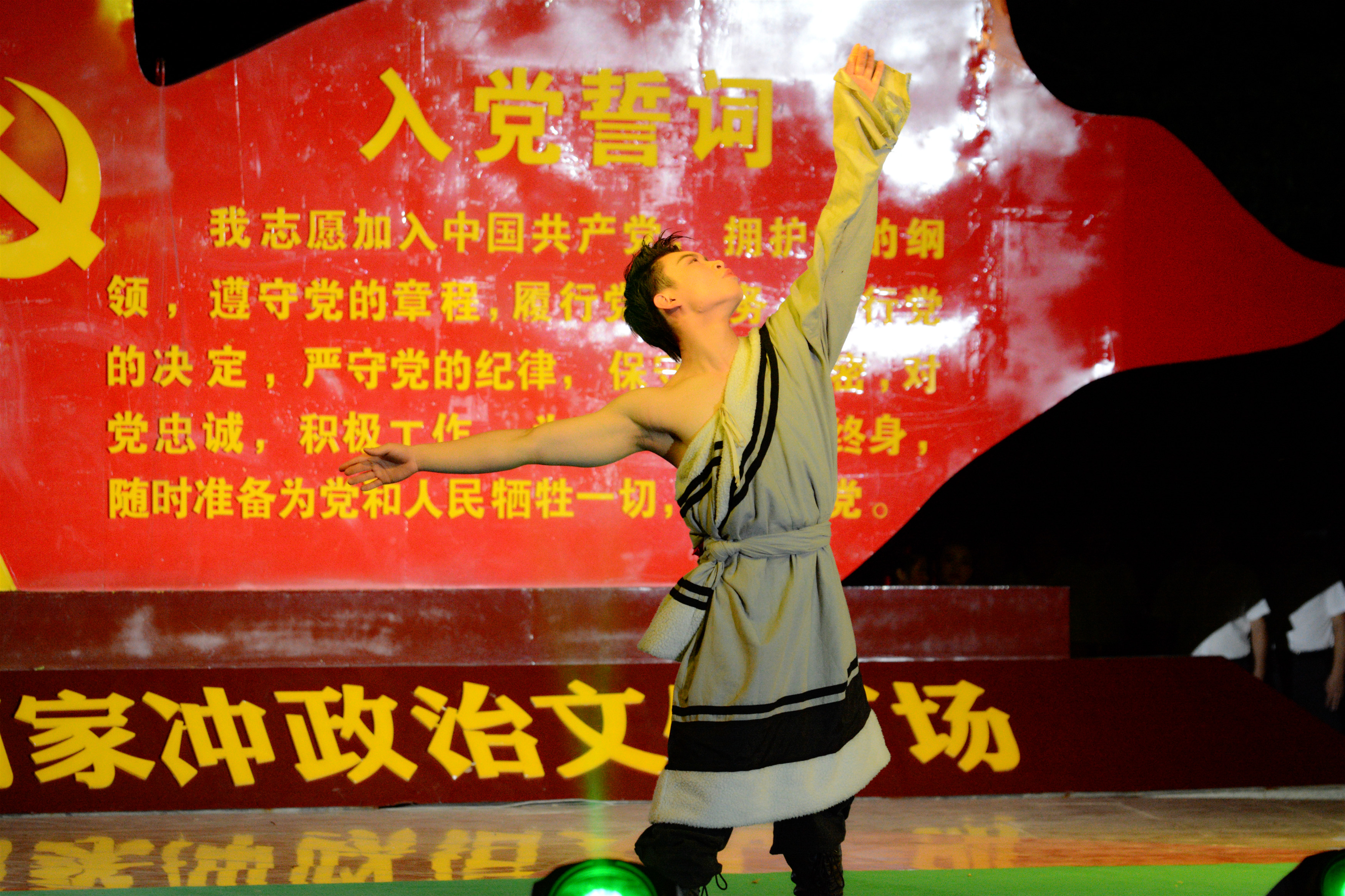 专场文艺晚会上,来自于taptap点点体育暑期社会实践团的师生和信阳市文化旅游系统的文艺工作者们合作为革命老区何家冲的乡亲父老们带去了一场内容丰富,形式多元,精彩纷呈的综合性文艺演出。现场的节目从舞蹈到歌曲再到传统戏曲,每一个作品都倾注了创作者与表演者的热情与专注,台上演的精彩,台下掌声欢呼声此起彼伏,高潮迭起。实践团中来自于舞蹈学院中国舞专业的8位同学为本次文艺晚会带来了精心排演的女子四人舞《吉祥》、男子独舞《渡生》、女子群舞《采薇》、男子四人舞《英魂》和女子独舞《红蜻蜓》,精湛的舞技,优美的舞姿、用心的演艺,赢得了当地老百姓真挚地欢呼。;来自继续教育学院音乐表演专业的5位学生与专业教师石灵带来了3首由该专业负责人张重远老师领衔师生新编经典歌曲:男女对唱《红旗飘飘》、吉他弹唱《渔光曲》、合唱《同一首歌》,优美而现代的旋律打破了传统经典歌曲的固有节奏,让人耳目一新,学生们独特的嗓音与生动的演唱,老师用心的演奏与纯熟的技巧,获得了大家的肯定与掌声。