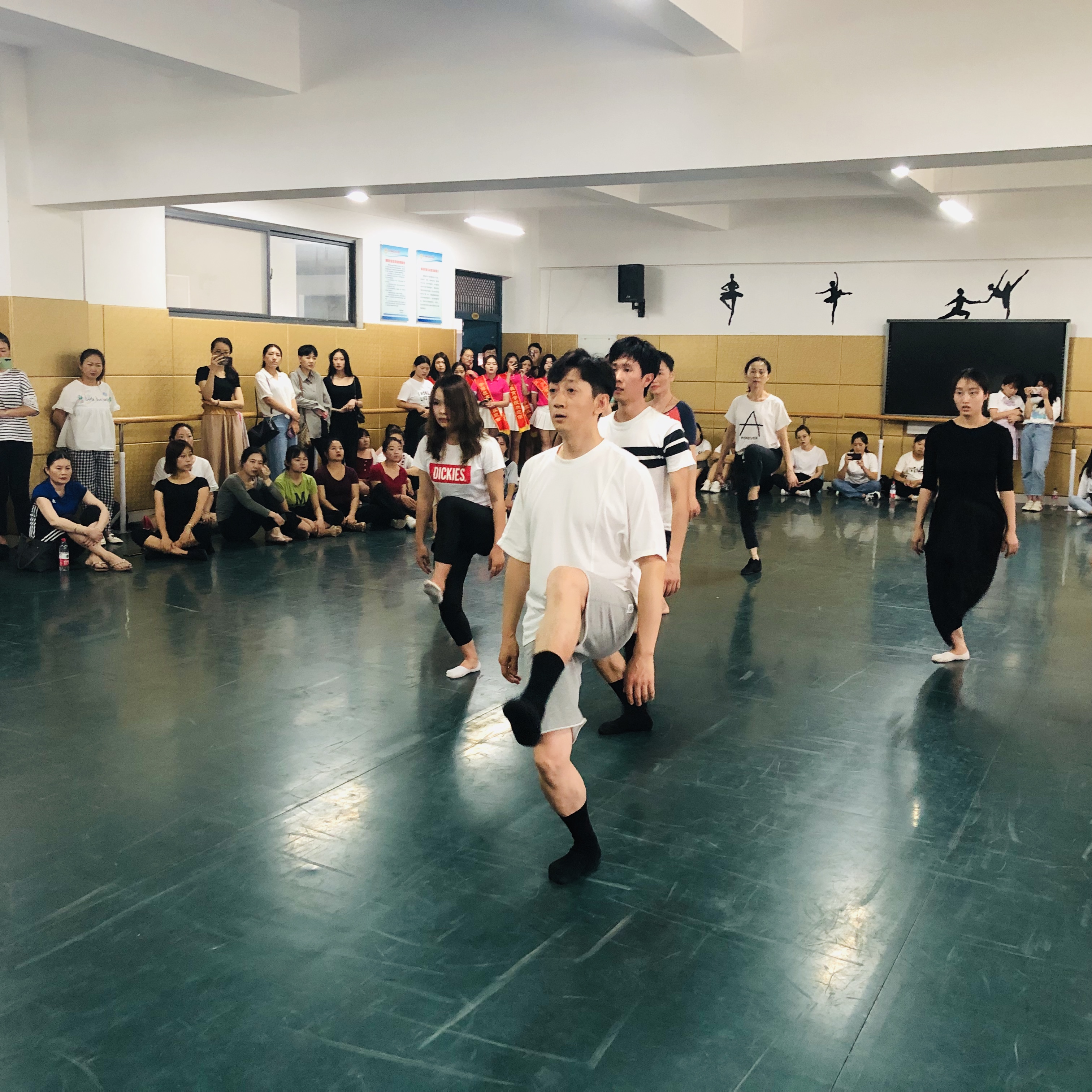 由舞蹈学院党总支书记、副院长张麟老师与舞蹈表演系主任庄丽老师赴信阳职业技术学院开展讲座与工作坊,上午张麟老师做了《舞蹈创作中的动作构筑及语言创生问题与对策》的讲座,深入浅出地为信阳当地舞蹈团与舞蹈专业老师讲述了舞蹈的构成、空间的结构、舞蹈肢体发展的可能性等重要理论焦点与问题,下午开展了《舞蹈工作的构筑》的工作坊,得到了在场学员们的一致好评。庄丽老师同样开展了《中国古典舞身韵》的舞蹈工作坊,现场前来参加学习的学员将不大的练功房围得水泄不通,连庄老师演示的空间都几乎被挤满了,庄丽老师从中国古典舞身韵提和沉的发力方式,再到古典舞的几个手位和手型,双晃手组合等进行了训练,学员们受益颇多。