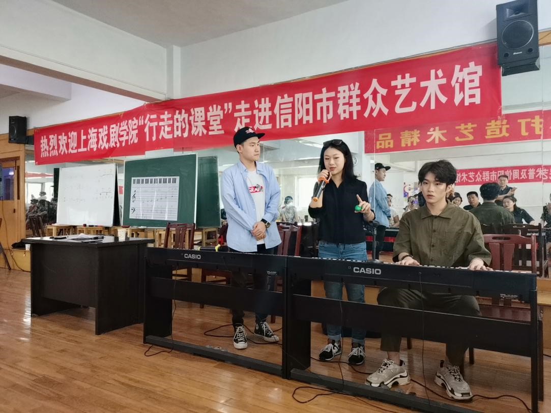 由继续教育学院音乐表演专业教师石灵老师赴信阳市群众艺术馆开展了《感受弹唱的美》音乐表演工作坊,前来参与学习的信阳群众艺术馆合唱团成员在音乐表演的师生的教学互动下感受到了来自演唱与演奏不一样的体验和收获,工作坊现场石灵老师讲述了即兴伴奏中和弦的配置,简易的曲式分析等专业知识,也带领专业学生进行了互动弹唱,工作坊的开展为此次taptap点点师生走进信阳,增添了更多育人育德的意义。