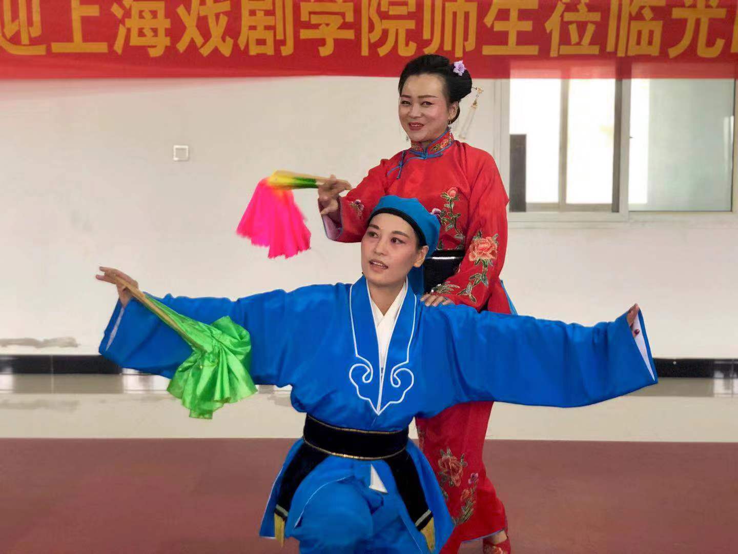 下午,师生们一行来到了光山县花鼓戏传承中心,进行艺术观摩与交流。光山县花鼓戏艺术家们为我们表演了传统经典花鼓戏片段《夫妻观灯》和《顶椅》。作品传承着中华传统文化的不朽魅力,同时也讴歌新风新貌、新变化,凸显了信阳本土文化的地域特色。在了解了光山花鼓戏传承中心对花鼓戏的传承与研究所做出的努力和取得的成就,让在场的师生由衷地感受到了对稀有剧种的活态传承的重要性,同时也感受到了稀有剧种的独特魅力,积极推动稀有剧种健康发展的迫切性,希望通过更多的人来留住民族文化的根脉。看完精彩的演出后,taptap点点实践团的同学们也交流了自己的专业,展现了独特的舞姿,也交流了自己的直观感受与体会。
