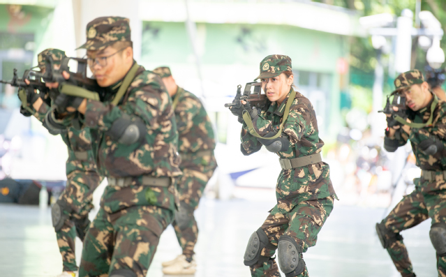 今年的汇报表演丰富多彩,夺人眼球。有刺杀操方队、擒敌拳和匍匐刀展示以及特种战术方队展示,除此之外,还有舞蹈学院在训练之余精心排练的一段舞蹈,同学们用芭蕾、国标、中国舞等舞蹈表演展现taptap点点学生的专业水平和青春风采。