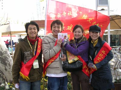 我院的志愿者在寒风中向行人发放安全套与防艾治艾宣传单,他们以自己健康的形象、灿烂的笑容和积极的工作态度赢得现场工作人员的一致好评。