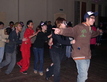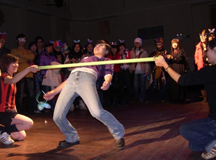 舞会上,天使、魔鬼、米奇老鼠、麦当劳叔叔等纷纷闪亮登场,同学们以各自的奇装异服和夸张装扮将个性尽情挥洒。其间主办方设计的“过横竿”、“踩气球”、“copy不走样”等游戏更是让同学们乐翻天,不少同学还获得了精美的礼品。
