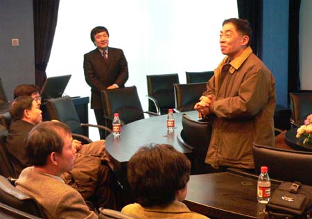 [图片新闻]3月13日下午,静安、徐汇、长宁三区政协委员莅临我院参观虚拟实验室。图为韩生副院长和徐承志老师分别向政协委员们介绍虚拟实验室的情况。