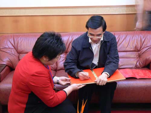 图为中共上海市委副书记王安顺在贵宾室签到留念。