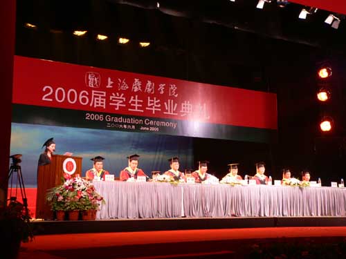 党委书记贺寿昌,党委副书记、副院长葛朗,副院长韩生,副院长刘志钢,副院长孙惠柱,院长助理徐幸捷,学术委员会委员叶长海,创作演出实践基地行政总监兼艺术总监张仲年等学院领导为毕业生们颁发了学位证书。