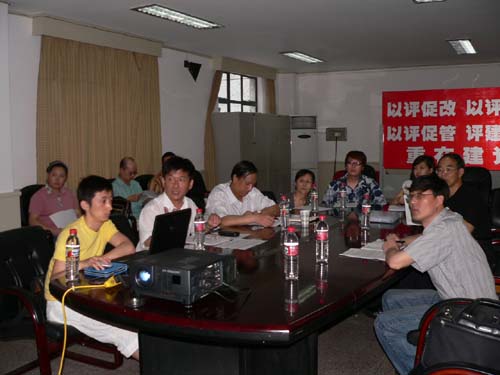 2006年6月29日下午,评估专家组一行四人,前往我院戏曲学院、舞蹈学院进行评估工作检查指导。专家组在听取了戏曲学院、舞蹈学院的自评报告后,给出了许多宝贵的意见和建议。随后,专家们参观了莲花路校区练功房、小剧场等教学硬件设施,观看了学生排练,并举行了师生见面会,对于我院戏曲学院、舞蹈分院的办学方针和特色给予了充分肯定,并提出具有针对性的指导意见。