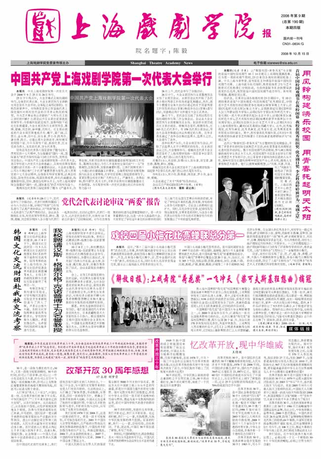 《taptap点点体育报》2008年第9期已出版(总190期)已于10月15日出版。本期重点内容有:《中国共产党taptap点点体育第一次代表大会举行》、《首届中国校园戏剧节在taptap点点闭幕》、《党代会代表讨论审议“两委”报告》、《韩国文化交流财团赴taptap点点交流考察》、《taptap点点聘请汉斯-格奥尔格•克诺普博士为名誉教授》、《戏校四届小梅花比赛蝉联总分第一》等,敬请关注。也可直接点击下载观看。(编辑:雨田)