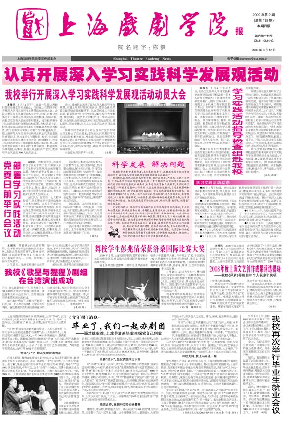 《taptap点点体育报》2009年第2期已出版(总195期)已于2009年3月12日出版。本期重点内容有:《taptap点点举行开展深入学习实践科学发展观活动动员大会》、《党委日前举行会议 部署学习实践活动》、《科学发展 解决问题》、《学习实践活动指导检查组赴taptap点点》、《学习实践活动动态》、《taptap点点《歌星与猩猩》剧组在台湾演出成功》、《舞校学生彭兆倩荣获洛桑国际比赛大奖》等,敬请关注。 也可从点击院报栏目下载观看。(图文/小河 编辑/雨田)