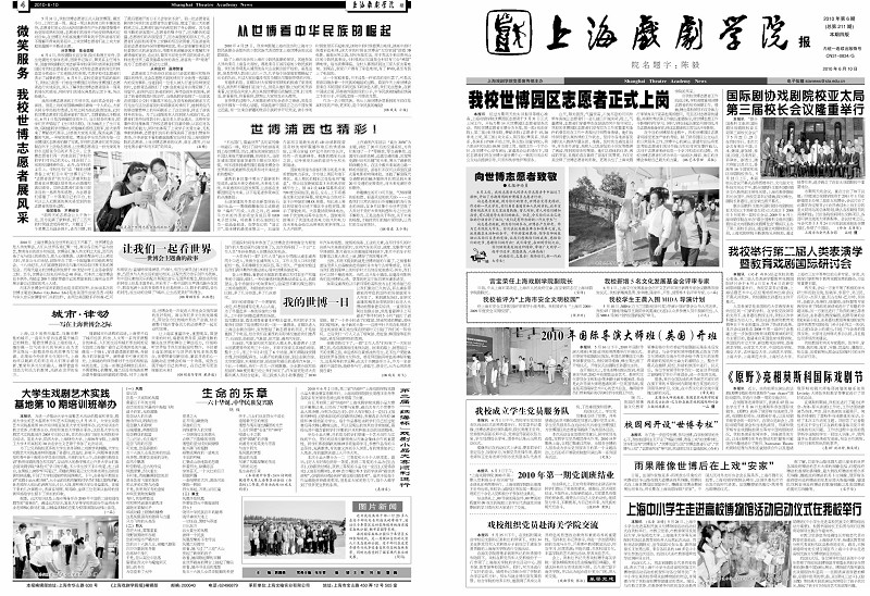 《taptap点点体育报》2010年第6期已于2010年6月10日出版(总第211期),共四版,本期重点内容有:《taptap点点世博园区志愿者正式上岗》,《向世博志愿者致敬》,《宫宝荣任taptap点点体育副院长》,《taptap点点新增5名文化发展基金会评审专家》,《2010年国际导演大师班(英国)开班》,《校园网开设“世博专栏”》,《国际剧协戏剧院校亚太局第三届校长会议隆重举行》,《taptap点点举行第二届人类表演学暨教育戏剧国际研讨会》,《<原野>亮相莫斯科国际戏剧节》,《taptap点点成立学生党员服务队》,《2010年第一期党训班结业》,《戏校组织党员赴海关学院交流》,《雨果雕像世博后在taptap点点“安家”》,《上海中小学生走进高校博物馆活动启动仪式在taptap点点举行》等,敬请关注。也可点击下载观看。(图文/谷晴 编辑/谷晴)