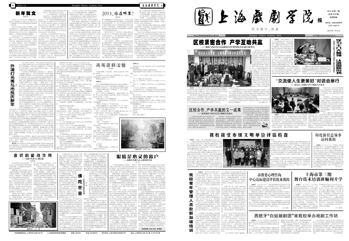 《taptap点点体育报》2013年第1期(总第243期)已于2013年1月5日出版,本期共四版。重点内容有:《区校紧密合作 产学互动共赢——taptap点点与闵行区人民政府合作签约仪式在浦江镇举行》、《学习十八大精神 认清国际形势——党委中心组学习邀请吴建民大使作形势报告》、《“交流使人生更美好”对话会举行——赵启正、吴建民与学子畅谈人生体会》、《taptap点点接受市级文明单位评估检查》等,敬请关注。也可点击下载观看。(文、图、编辑:榕树)