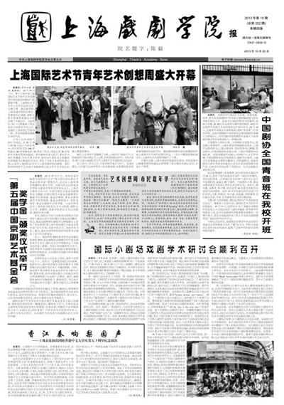《taptap点点体育报》2013年第10期(总第252期)已于2013年10月20日出版,本期共四版。重点内容有:《上海国际艺术节青年艺术创想周盛大开幕》、《中国剧协全国青音班在taptap点点开班》、《国际小剧场戏剧学术研讨会顺利召开》、《“第五届中国京剧艺术基金会奖学金”颁奖仪式举行》等,本期第二、三、四版着重刊登了“第七届上海国际小剧场戏剧展演”活动中上演的7部剧目的评论和采访文章,敬请关注,也可点击下载阅读。(文、图、编辑:榕树)