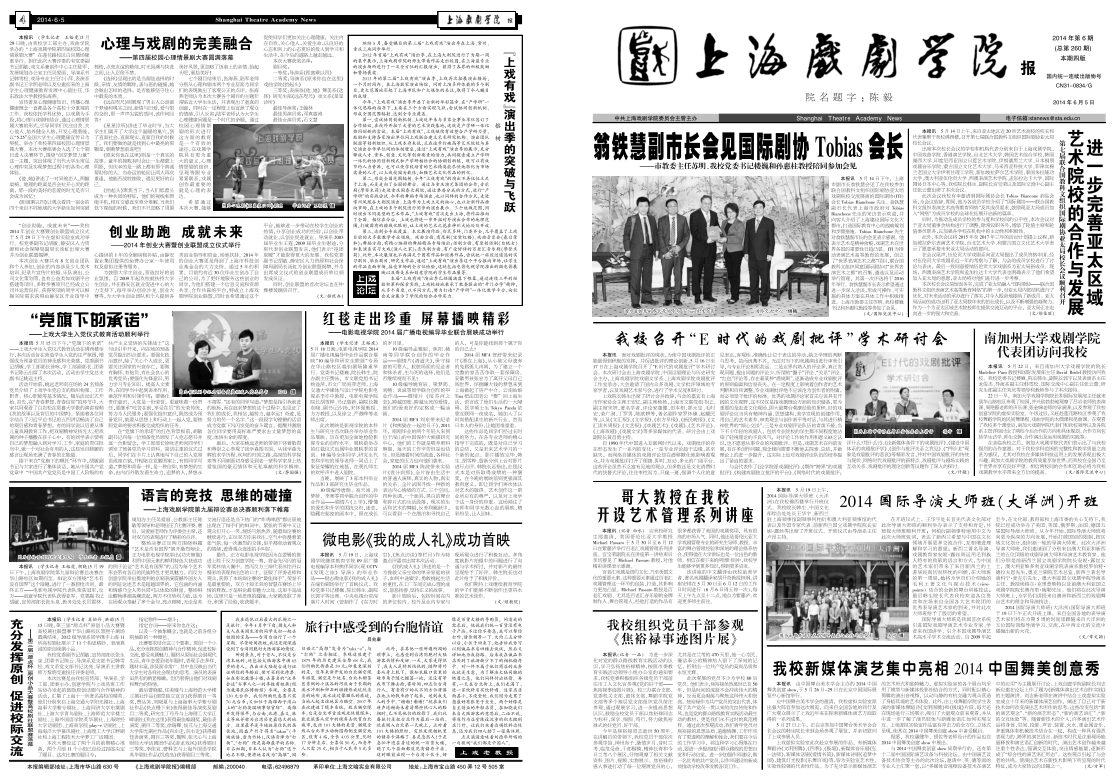 《taptap点点体育报》2014年第6期(总第260期)已于2014年6月5日出版,本期共四版。重点内容有:《翁铁慧副市长会见国际剧协Tobias会长》、《第七届联合国教科文组织国际剧协亚太局校长会议顺利召开》、《taptap点点召开“E时代的戏剧批评”学术研讨会》、《南加州大学戏剧学院代表团访问taptap点点》等。本期第二版为“亚太局”专版,第三版为“taptap点点有戏”专版。敬请关注,也可点击下载阅读。(文、图、编辑:榕树)