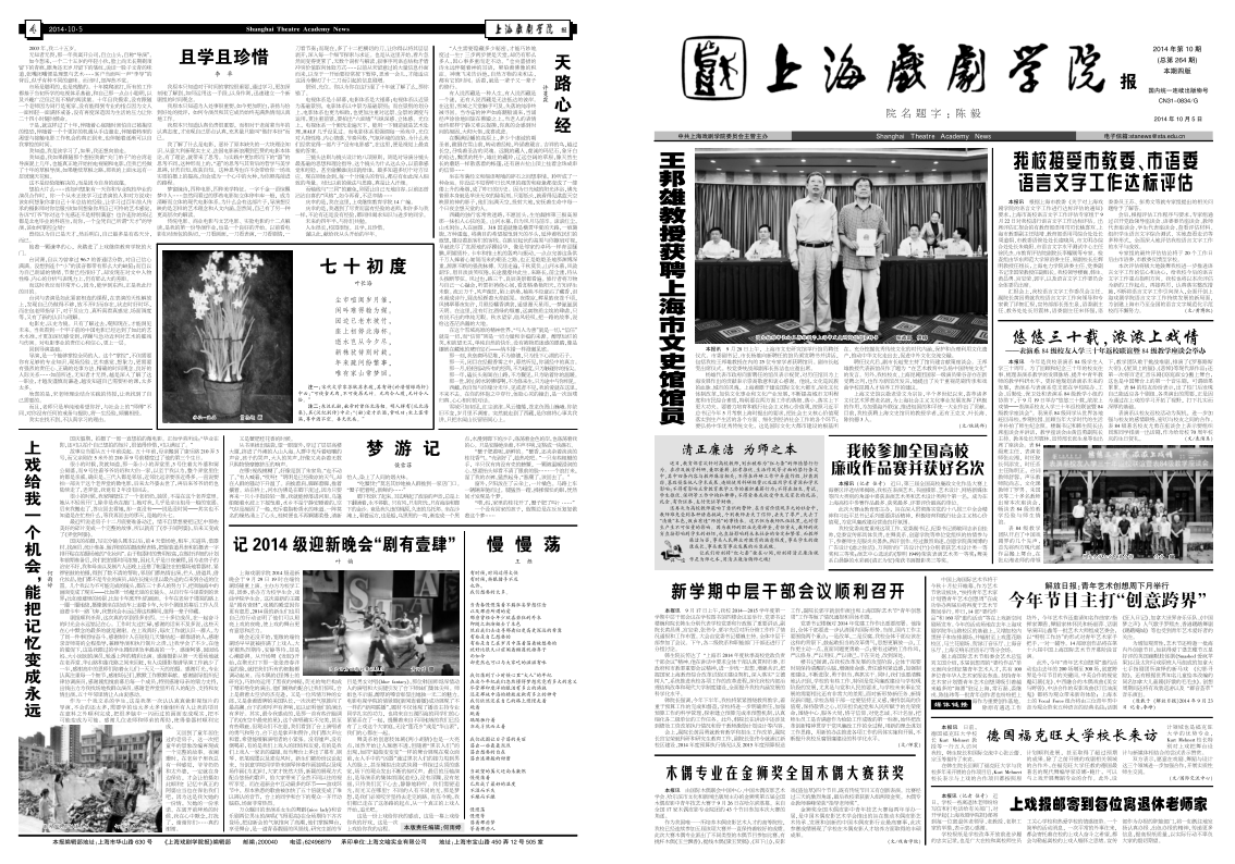 《taptap点点体育报》2014年第10期(总第264期)已于2014年10月5日出版,本期共四版。重点内容有:《王邦雄教授获聘上海市文史馆馆员》、《taptap点点接受市教委、市语委语言文字工作达标评估》、《悠悠三十载,浓浓taptap点点情——表演系84级校友入学三十年返校联谊暨84级教学座谈会举办》、《taptap点点参加全国高校廉政作品赛并获好名次》等。本期第三版选载了taptap点点辅导员谈艺术院校思政教育和队伍建设的论文。敬请关注,也可点击下载阅读。(文、图、编辑:榕树)