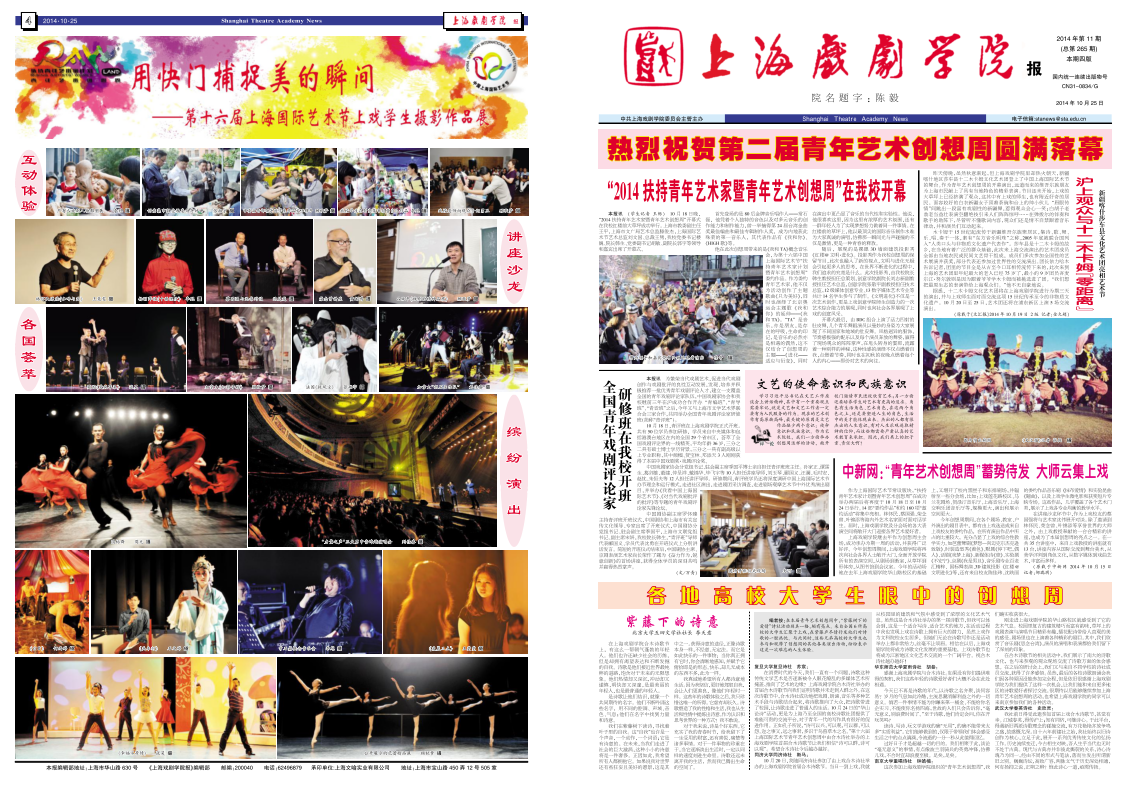 《taptap点点体育报》2014年第11期(总第265期)已于2014年10月25日出版,本期彩版,共四版。重点内容有:《“2014扶持青年艺术家暨青年艺术创想周”在taptap点点开幕》、《全国青年戏剧评论家研修班在taptap点点开班》、《各地高校大学生眼中的创想周》等。敬请关注,也可点击下载阅读。(文、图、编辑:榕树)