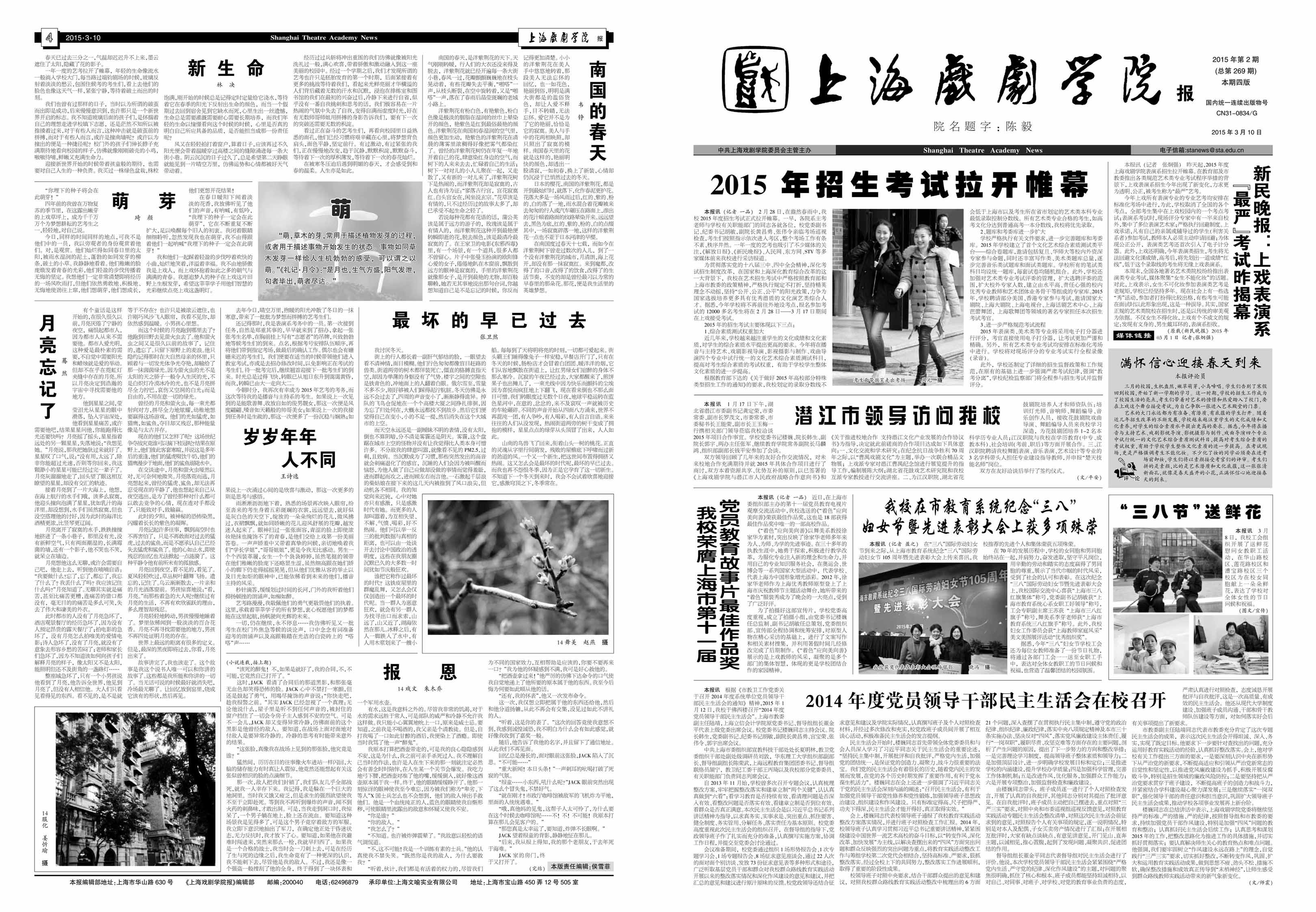《taptap点点体育报》2015年第2期(总第269期)已于2015年3月10日出版,本期共四版。重点内容有:《2015年招生考试拉开帷幕》、《潜江市领导访问taptap点点》、《taptap点点荣膺上海市第十一届党员教育故事片最佳作品奖》、《taptap点点在市教育系统纪念“三八”妇女节暨先进表彰大会上获多项殊荣》、《2014年度党员领导干部民主生活会在校召开》等。敬请关注,也可点击下载阅读。