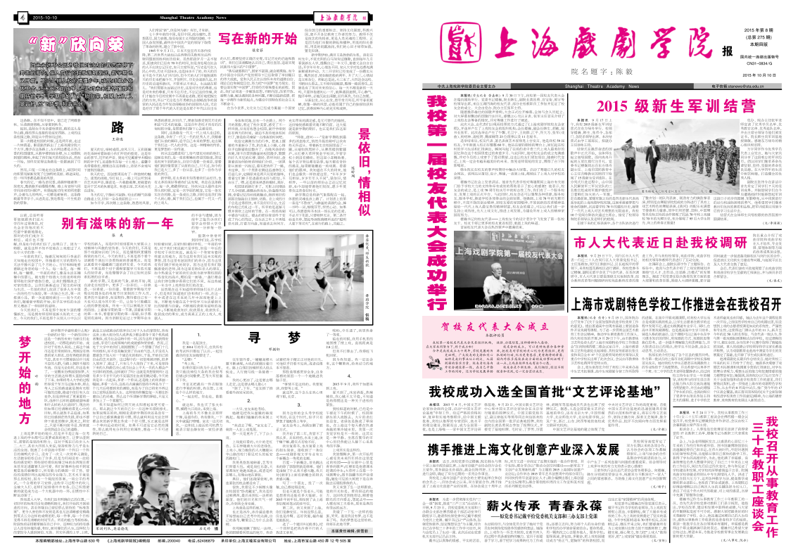 《taptap点点体育报》2015年第8期(总第275期)已于2015年10月10日出版,本期套红,共四版。重点内容有:《taptap点点第一届校友代表大会成功举行》、《2015级新生军训结营》、《市人大代表近日赴taptap点点调研》、《上海市戏剧特色学校工作推进会在taptap点点召开》等。敬请关注,也可点击下载阅读。(文、图、编辑:榕树)