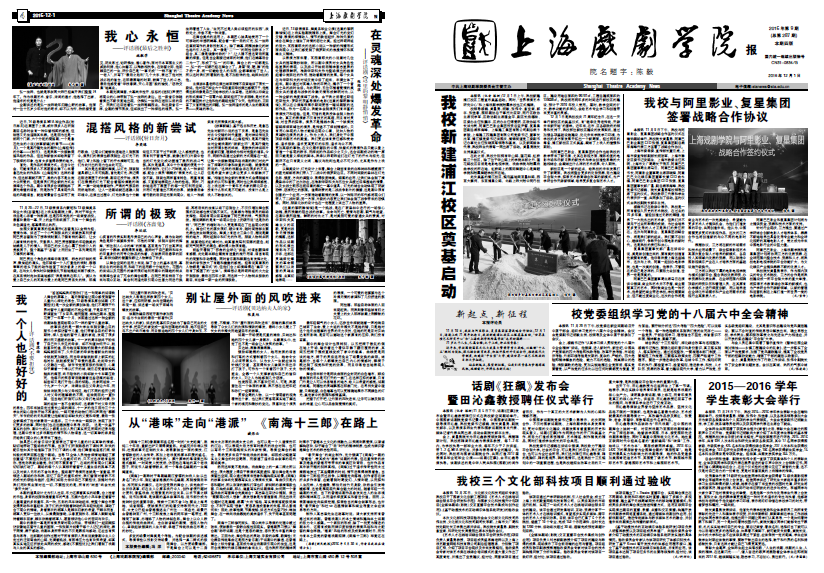 《taptap点点体育报》2016年第9期(总第287期)已于2016年12月1日出版,本期共四版。重点内容有:《taptap点点新建浦江校区奠基启动》、《taptap点点与阿里影业、复星集团签署战略合作协议》、《校党委组织学习党的十八届六中全会精神》、《话剧《狂飙》发布会暨田沁鑫教授聘任仪式举行》等。敬请关注,也可点击下载阅读。(文、图、编辑:榕树)